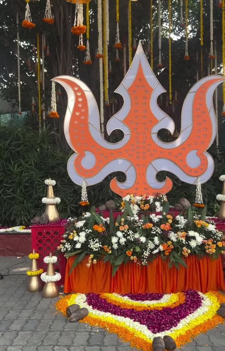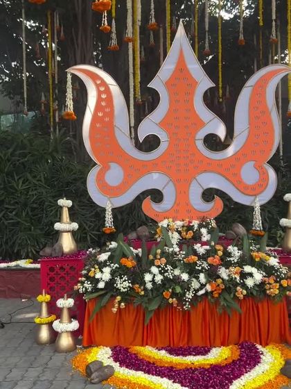 To capture the powerful and serene energy of Lord Shiva, I design decor for MahaShivratri that is both grand and meditative. My work for these events features symbolic elements like the Trishul and Shivling, often crafted from white flowers to evoke a sense of calm and divinity.