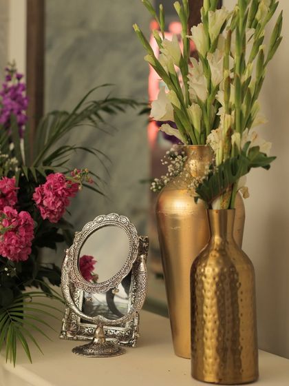 We transform venues into stunning wedding spaces through our comprehensive decor services. Our expertise includes luxurious floral arrangements, themed setups, and custom installations featuring elements like chandeliers, gold accents, and decorative mirrors.