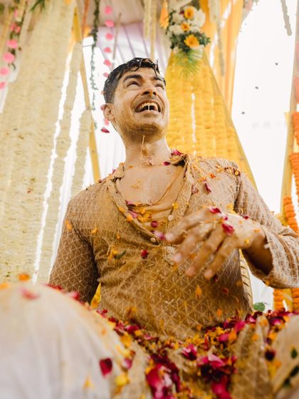 I see the Haldi as a riot of color and unscripted joy. My focus is on capturing the raw, candid moments, from flying marigold petals and playful turmeric smears to the pure, unrestrained laughter of family and friends.