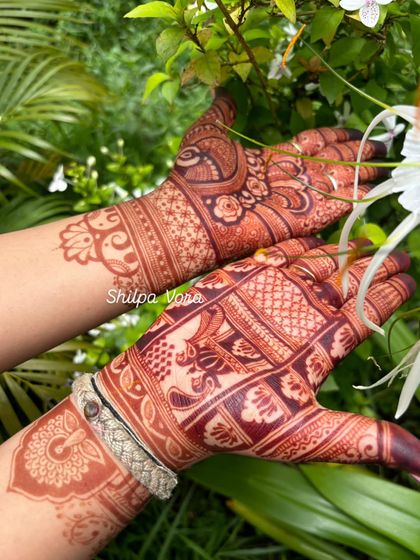 I do full bridal mehndi with custom designs, story elements, and guest coverage, and I travel across Mumbai for weddings.