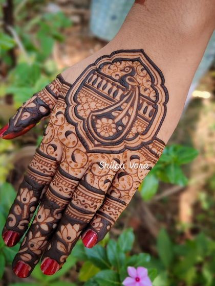 I specialize in creating elegant engagement mehndi designs that symbolize love and unity. My designs cover hands and forearms with detailed patterns incorporating couple motifs and romantic elements.