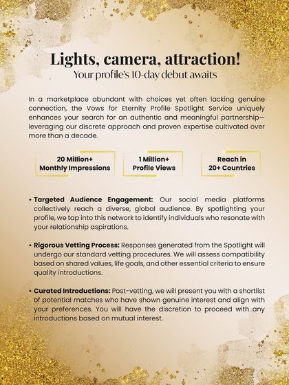 We’re Vows For Eternity. Been around more than 10 years, and honestly, matchmaking is personal for us. Saw folks in New York, London, Mumbai—smart, funny, good-hearted—just lost in the noise of dating apps and rishta aunties. We wanted something real, not just a checklist. So we built this for people who crave genuine connection, who want love that feels like home. Forbes said nice things, but for us, it’s about seeing two people find calm, certain love.