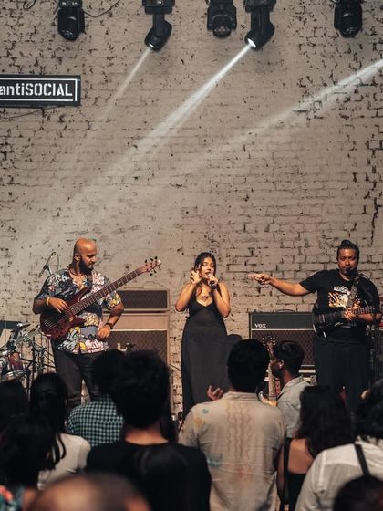 Our set moves from jazz and soul to funk, R&B, and disco. We do classic pop, retro numbers, and Bollyjazz - those old-school Bollywood tunes with a modern twist. We sing in English, Hindi, Portuguese, and Spanish, so mehfil ready hai (the gathering is set).