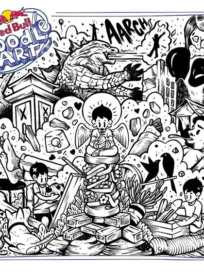 I run hands-on art workshops, set up doodle walls for all ages, give talks about working as an illustrator, and review student portfolios with real-world feedback.