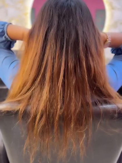 - Balayage / Ombre: Freehand painting for a graduated, sun-kissed look (Dark roots to light ends).
