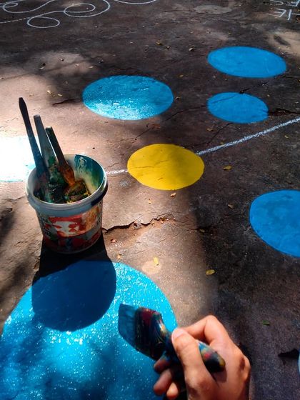 These projects are my heart. I collaborate with NGOs, schools, and local communities to transform shared spaces into vibrant canvases of hope and togetherness, often getting everyone involved in the painting process.