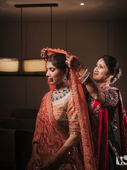 Hey, we’re Vrinda and Shristi - VS Studio. 11 years, 500 weddings, 11+ countries, but honestly, we’re not counting. We’re chasing the real stuff. Like a nanu ka dupatta (grandmom's scarf), or that weird song only you two get. We started this for the messy, the happy tears, the non-Pinterest love. Shristi’s wedding was our own ‘ghar ki shaadi’. That’s when it hit us - you’re not just clients, you’re the story. We just frame it.