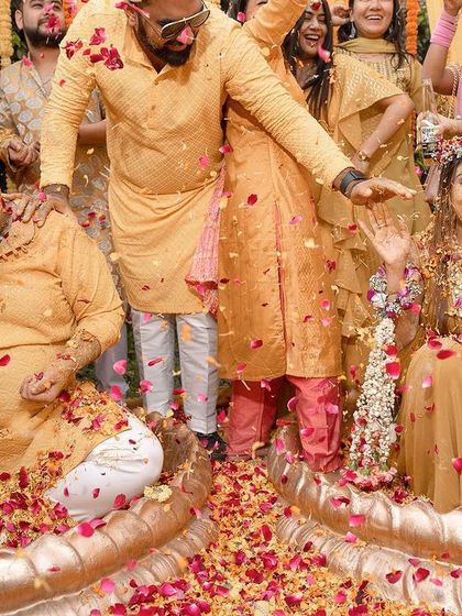 We focus on the vibrant colors, playful moments, and heartfelt emotions of your Haldi and Mehendi ceremonies. These photos capture the pure joy and tradition surrounded by family and friends, from turmeric paste shenanigans to intricate henna details.