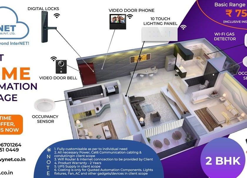To simplify the process, I have designed starter packages for typical home sizes like 2BHK and 3BHK apartments. These packages include essential security components like digital locks, video doorbells, and occupancy sensors, and are fully customizable to meet your specific needs and budget.