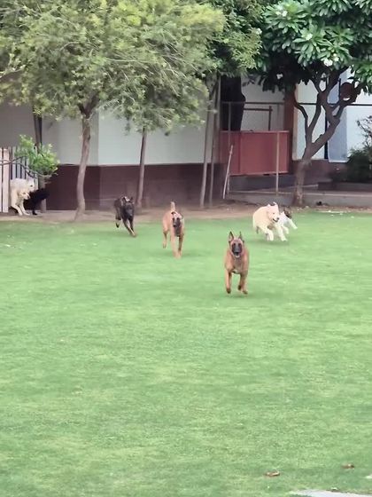 I don’t do cramped kennels. Dogs get the run of a 3-acre green park - chasing, playing, or just lazing around is all fair game. Agility tunnels and water sprinklers keep things lively, so boredom doesn’t stand a chance.