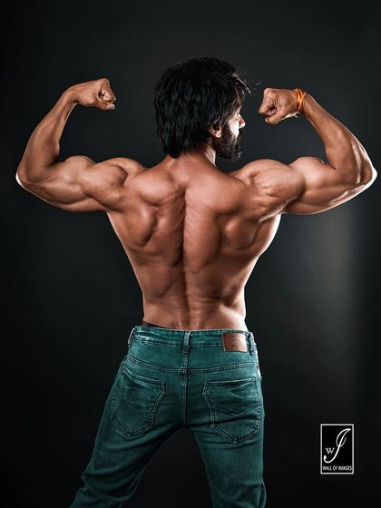 - Lighting: Signature dark mood setup using strip boxes to emphasize muscle separation.
