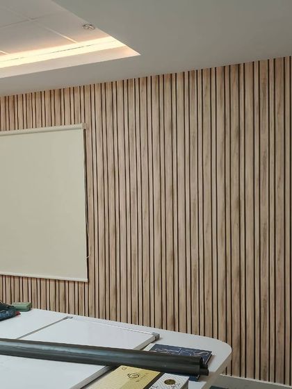 I install fluted panels to give walls a clean, modern look with vertical grooves. These are available in different wood-finish shades and are perfect for creating accent walls, covering TV unit backdrops, or even for ceilings.