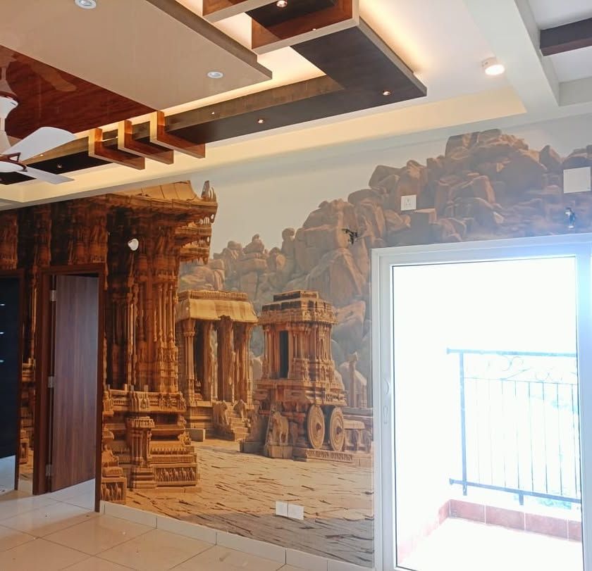 I install custom murals and wallpapers with spiritual and cultural significance, including designs of Buddha, Krishna, and traditional Indian art forms like Pichwai and Warli. These installations are perfect for creating a serene pooja space, a meditative corner, or a living room with a strong cultural identity.