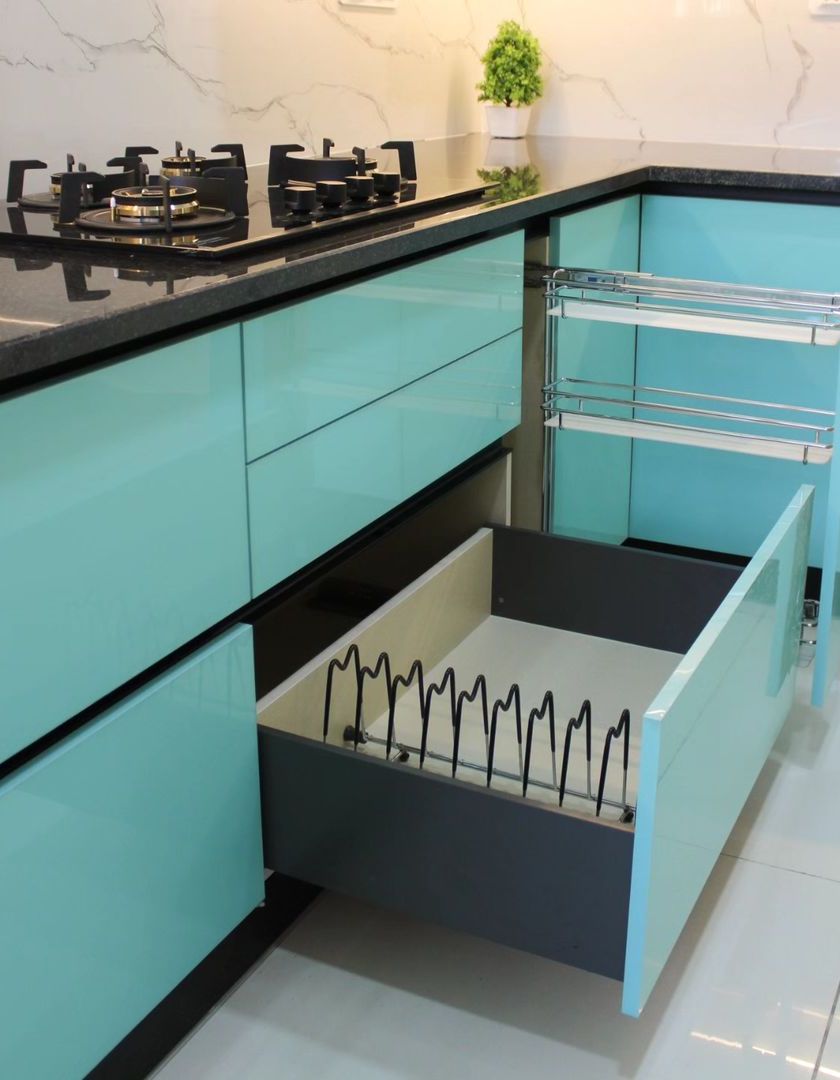 A great kitchen is an organized kitchen. We maximize every inch of space with custom storage solutions like pull-out racks and corner units, seamlessly integrating appliances for a clean, uncluttered look.