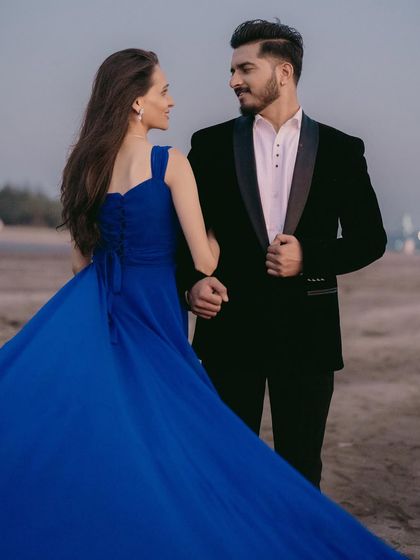 We rent pre-wedding photoshoot outfits for brides and grooms, offer try-ons at our Pune and Mumbai stores, and provide both modern and traditional styles with couple coordination.