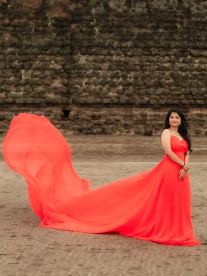 There’s something for every style and story. I’ve handpicked designer lehenga rental options for brides and besties. My luxury gown for photoshoot picks range from classic princess to dramatic, long-trail numbers – all perfect for parties, maternity shoots, or pre-wedding fun. For those who want to keep it desi, I stock traditional saree on rent, including Maharashtrian Navari and silk Paithani sarees.