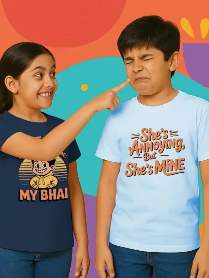 Let your kids wear their personalities with my fun and funky collection. I offer durable, comfortable apparel with everything from cute cartoons and sibling jokes to their own drawings, perfect for daily adventures and special occasions like Rakhi.