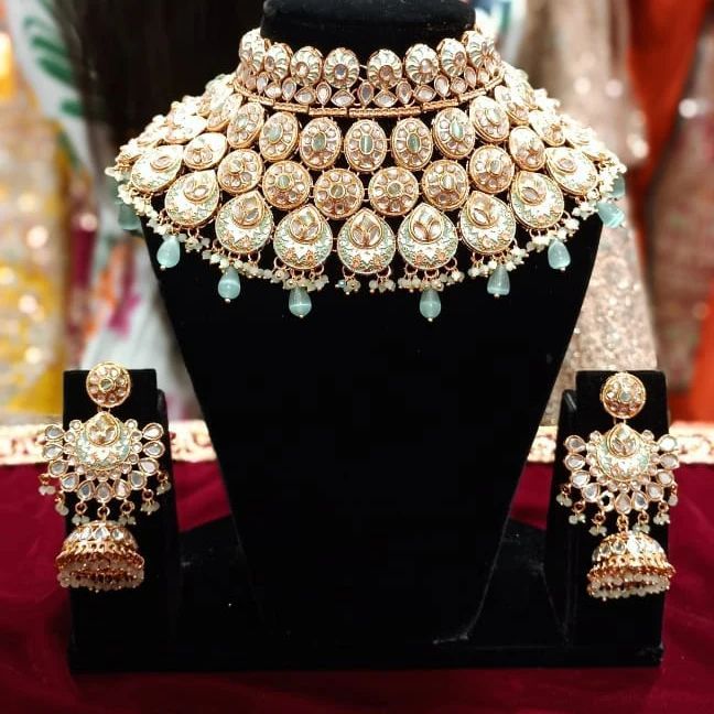 My collection is built on these timeless classics. Here you will find a wide range of heavy Kundan and Polki sets, perfect for the traditional bride. These pieces offer a rich, royal look and are available in various designs, from intricate chokers to layered necklaces.