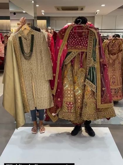 Come visit me in Rajouri Garden, Lajpat Nagar, or Gurugram to see the full collection. My racks are filled with designer lehengas, sherwanis, gowns, and matching jewelry, and our masterji is always here to ensure a perfect fit.