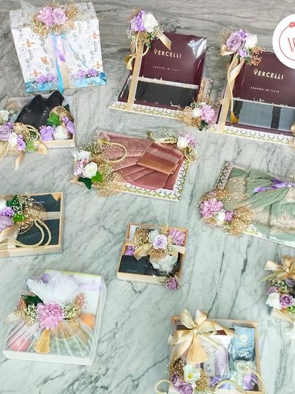 Personalised Wedding Gifts & Hampers - We make custom bridesmaid proposal gifts, luxury wedding welcome hampers, floral trousseau packaging, and quirky baraati gifts.