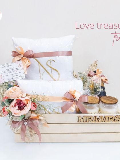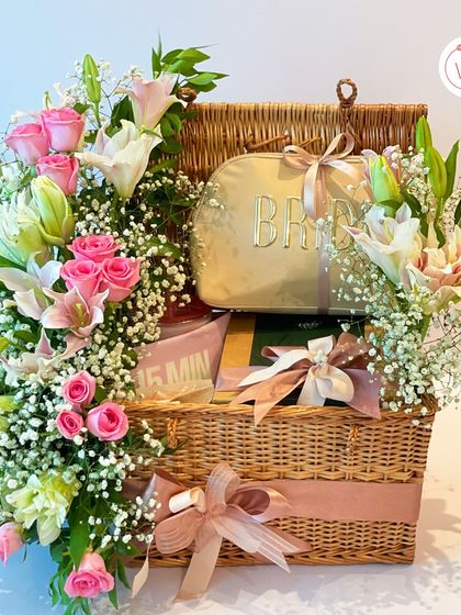 These are my showstopper creations, designed for grand gestures of love. I curate these hampers with premium products, gourmet foods, and lush floral arrangements to create an unforgettable gifting experience for engagements, or as a magnificent wedding gift for the couple.