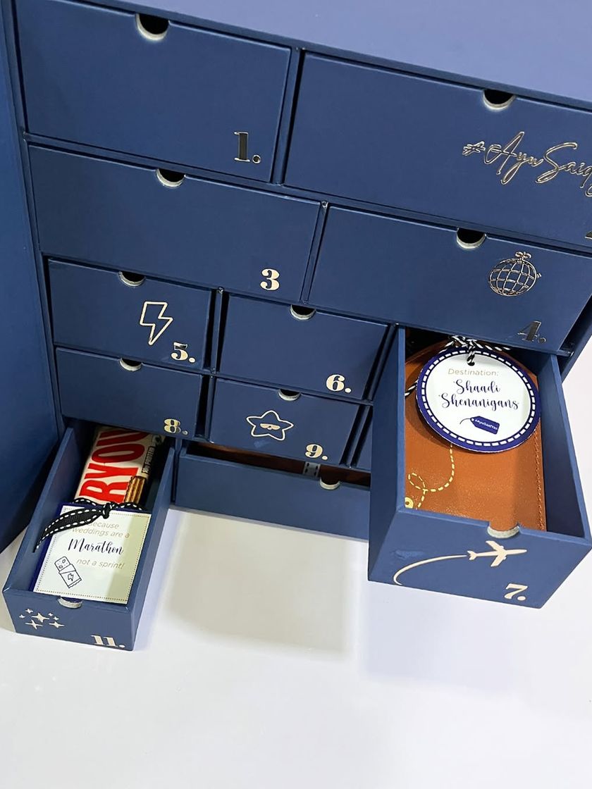 For couples looking for something unique, I love creating modern and quirky wedding favors that tell a story. From personalized sunglasses for the baraat and fun hangover kits to custom jewelry boxes and elegant clutches, these gifts are designed to surprise and delight your guests.
