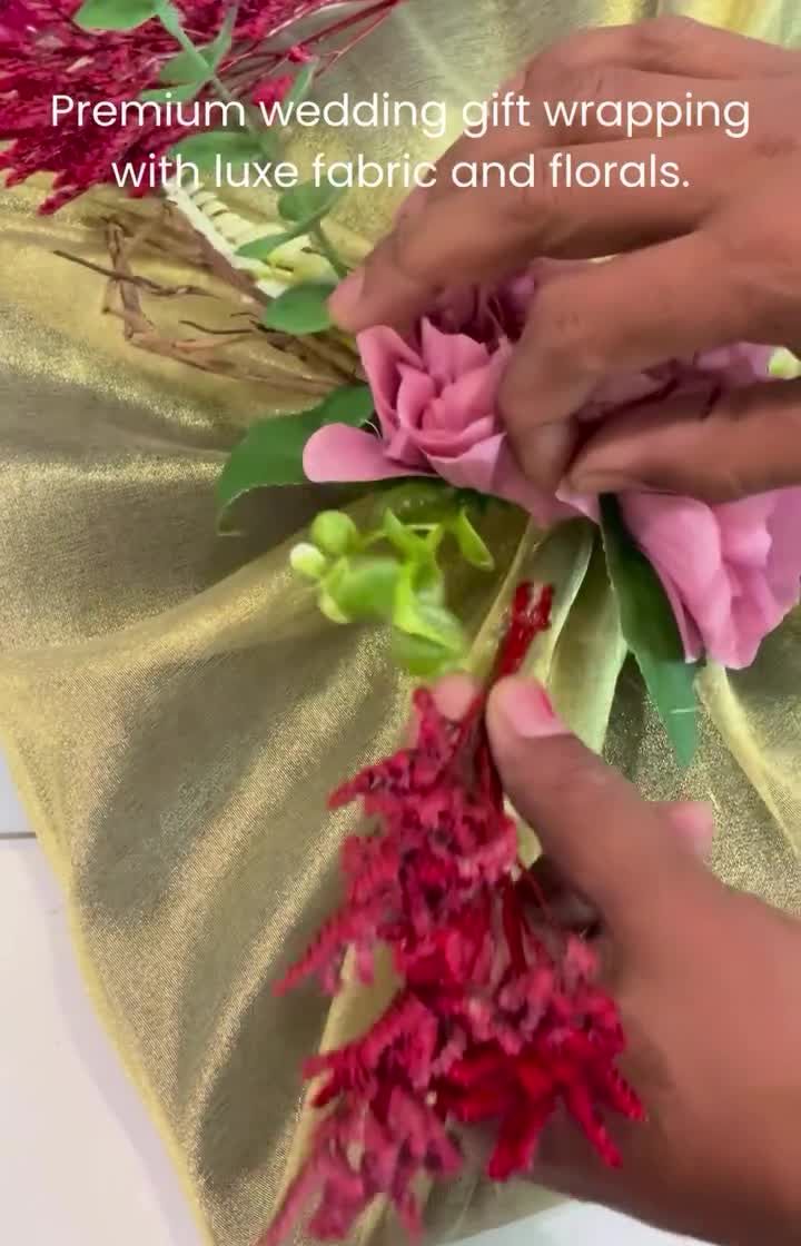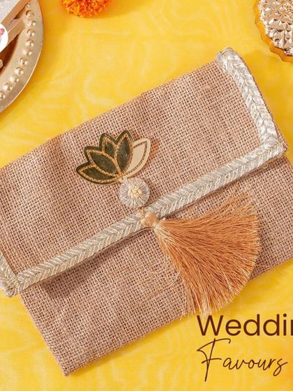 I create thoughtful wedding favours, like these charming jute pouches, for your guests to take home. I also design elaborate and elegant trousseau packaging to present gifts to the bride or groom's family in a truly special way.
