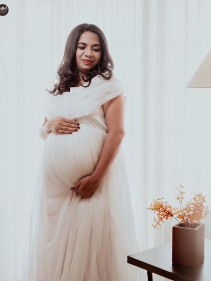 These studio sessions focus purely on you and your baby bump with clean, simple backgrounds and soft lighting. The style is modern and timeless, perfect for creating elegant portraits in simple dresses or classic attire.