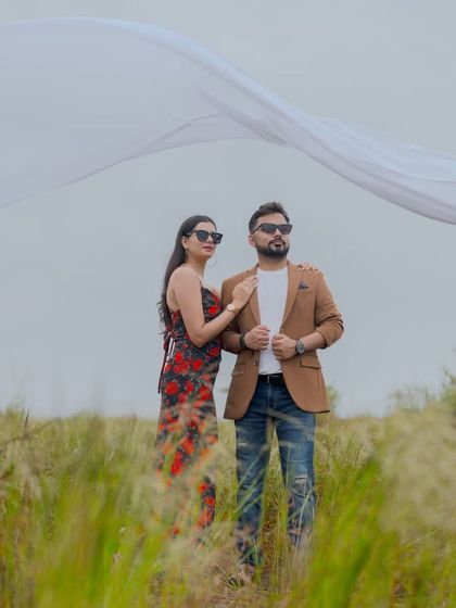 I specialize in creating timeless portraits that have a royal feel. We use the stunning architecture of heritage properties and paid studios like Picture Villa in Delhi NCR, pairing them with elegant ethnic wear or fairytale gowns to make you feel like a prince and princess.