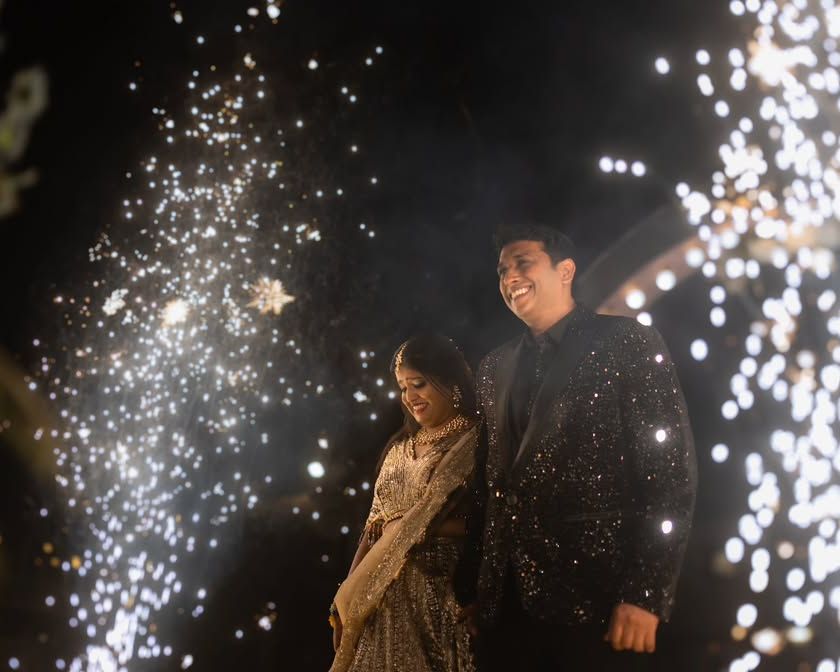 After the solemn vows, it's time to celebrate. I love capturing the wild energy of the dance floor, the spectacular fireworks, and the grand entrances that mark your reception or Sangeet, preserving the joy of your unforgettable night.