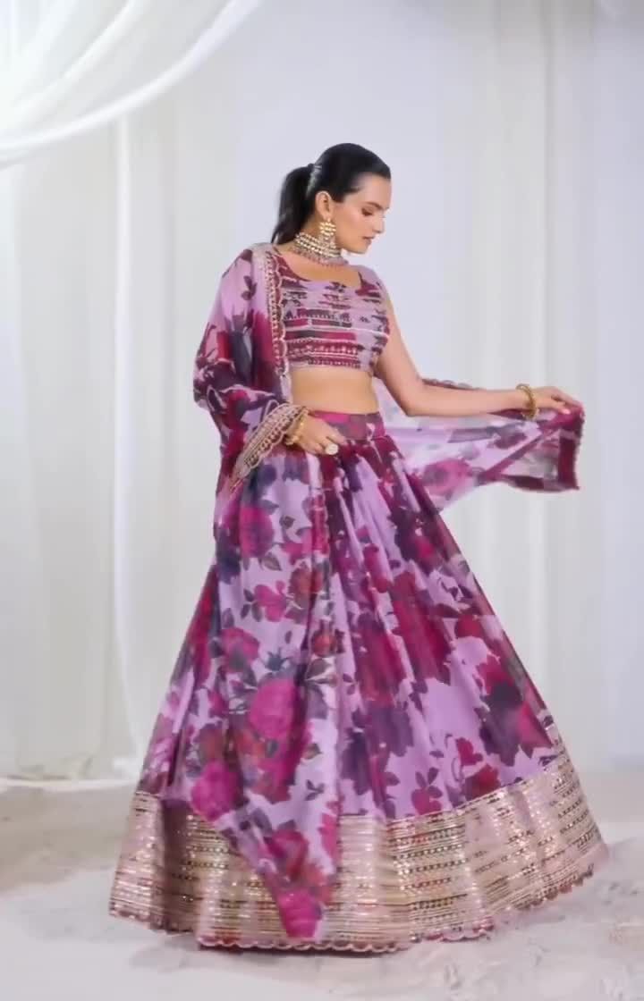 Perfect for pre-wedding celebrations, these pre-loved outfits are all about color and comfort. This collection features floral prints, bright yellows, and lightweight lehengas that are easy to dance in and look stunning in photos.