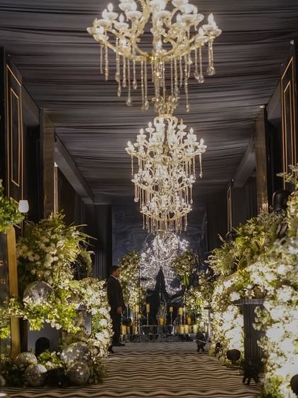 Signature Storytelling Style - Our decor tells your story—think Rajasthani wedding theme or Black Luxe Sangeet setup, we do both.