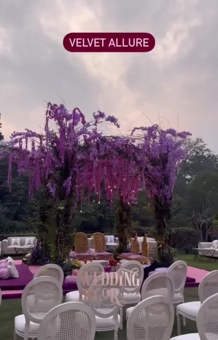 We love playing with rich textures and bold colors to create unforgettable wedding settings. This theme is a perfect example, combining the luxurious, royal touch of deep purple and lavender velvet with dreamy, soft florals. The result is a look that feels both grand and gracefully romantic, perfect for a sophisticated outdoor or indoor ceremony.