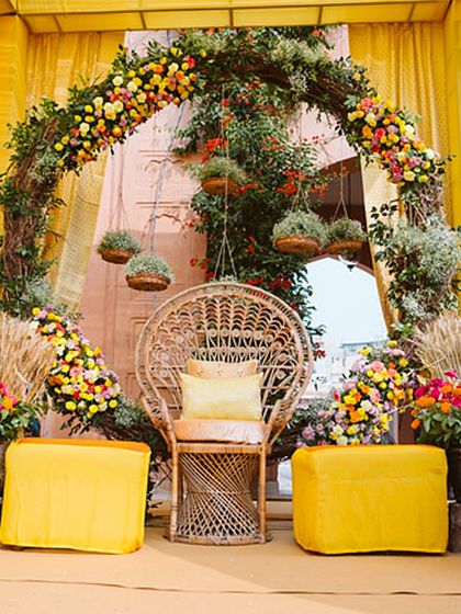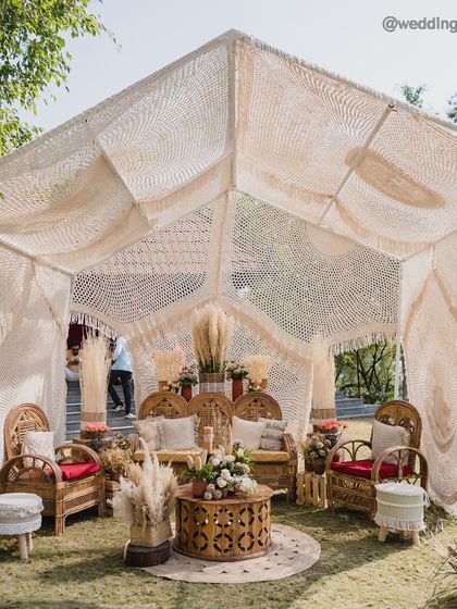 - Wild & Warm: Boho chic wedding decor with earthy textures, lots of dried florals and cane, perfect for those laid-back Mehendi or outdoor dinners.