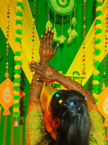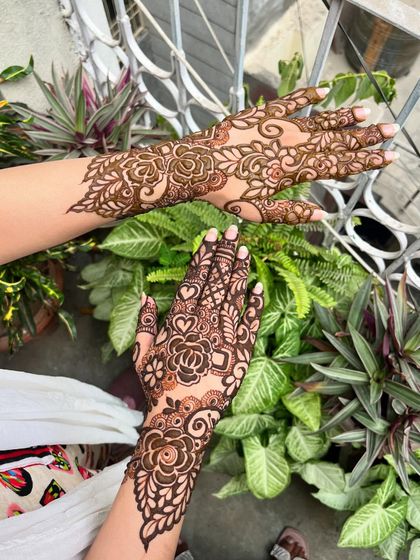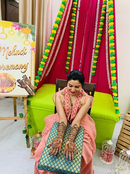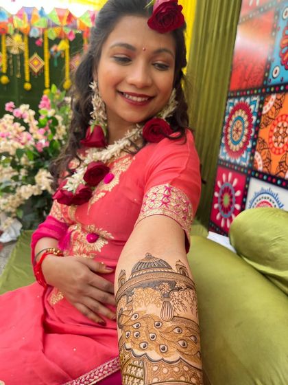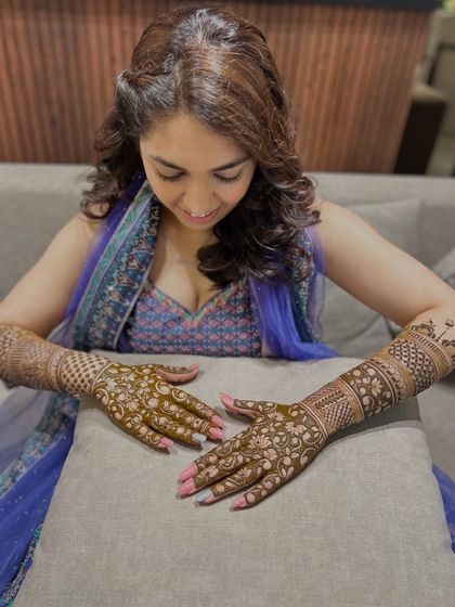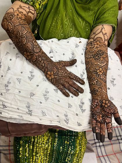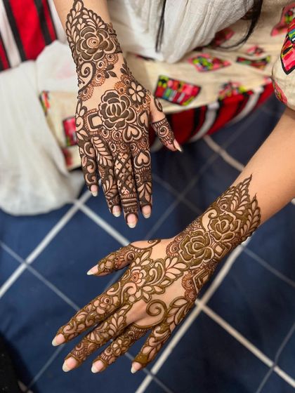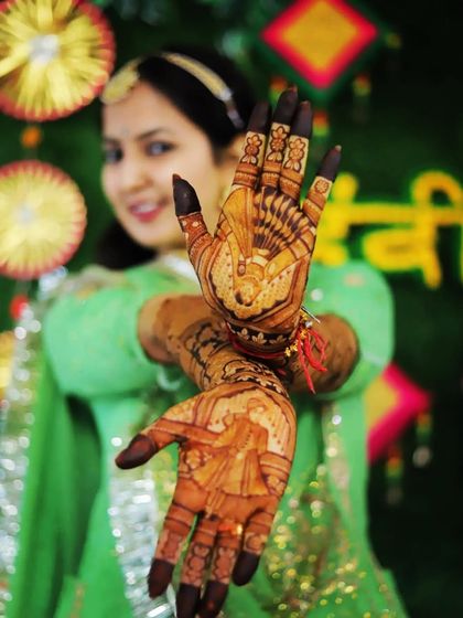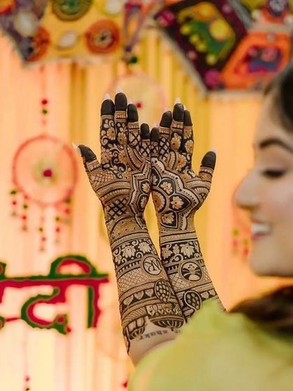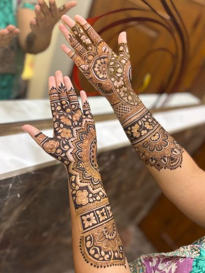 Don’t settle for generic designs—Noida brides want their love story on their hands. Artists like Heena Mehndi and Ankita Mehndi Artist are known for portraits, hidden initials, and custom motifs. If you want your pet’s face or wedding date in the design, ask for it! Tribe.best helps you find artists who actually listen and sketch your ideas, not just copy-paste old patterns.