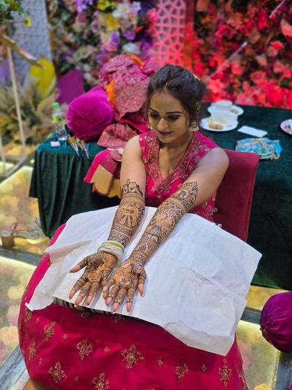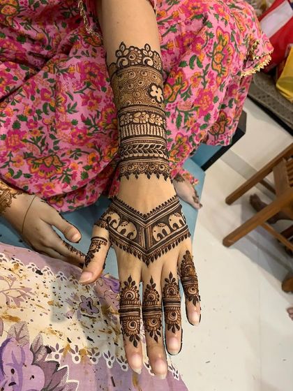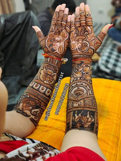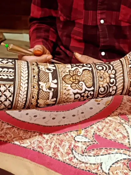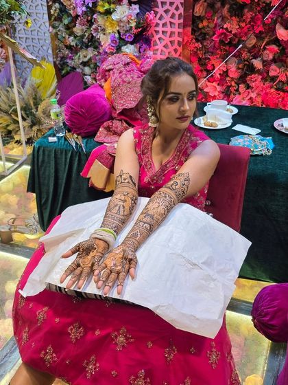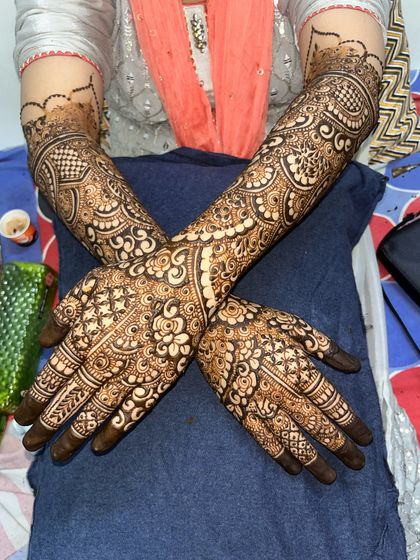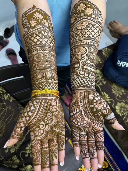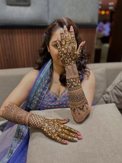 Noida brides love a mix of classic Rajasthani and modern storytelling designs. Baraat scenes, couple portraits, and even quirky hashtags are in. Artists like Raj Mehandi Art and Amit Mehandi Arts are great for full-family coverage, so your guests aren’t left waiting. And yes, organic henna is a must—nobody wants chemical drama before the big day.