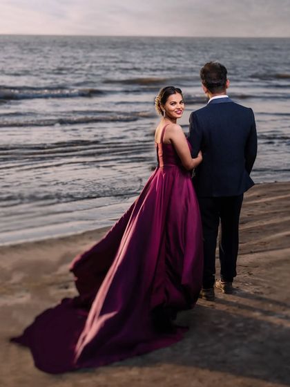 I use the open skies and shores of Mumbai and Satara's beaches to capture your story. We can shoot during the soft morning light for a fresh feel or at golden hour for those dramatic, warm sunset photos that everyone loves. This setting is perfect for both playful, candid moments and epic, cinematic portraits.