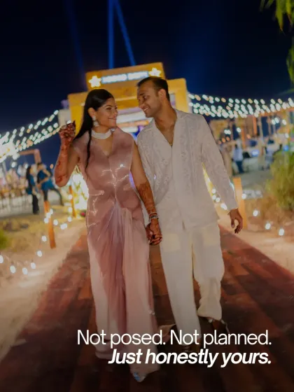 Delhi, Dubai, airport lounges – that’s pretty much my office. We chase love stories, not just pretty faces. Rain in Kerala, snow in Manali, chaos everywhere – we’ve seen how real moments just happen. The best part? It’s when things get messy, laughter spills, and you forget there’s a camera. That’s what we want to bottle up for you. Not just photos, but memories that feel alive. Your story, your vibe, nothing fake.