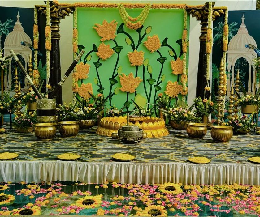 I design Haldi and Mehendi ceremonies that are bursting with color, joy, and personality. Using elements like marigolds, sunflowers, and traditional brass decor, I create a festive and fun atmosphere for these important pre-wedding rituals.