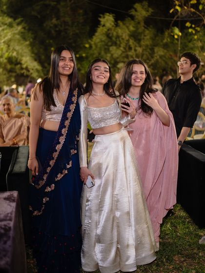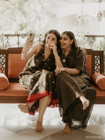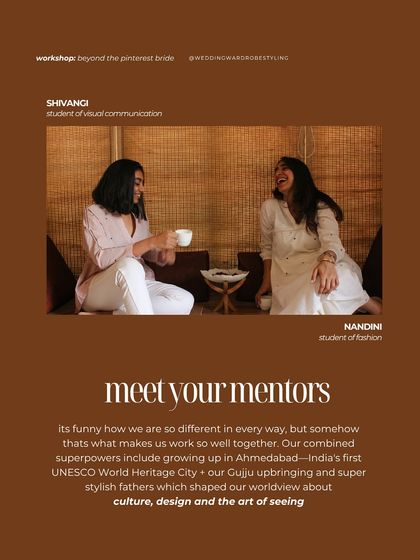 Hey, we’re Nandini and Shivangi. Styling, for us, feels like a proper road trip—lots of laughter, a few wrong turns, but always good company. Shivangi once wore her mom’s sarees for her own wedding, and that’s the vibe we bring—sentimental, fun, a little old-school. We love those family shopping scenes, you know? Our first ever client was a groom’s dad. That’s the heart of it—everyone’s story, not just the bride’s.