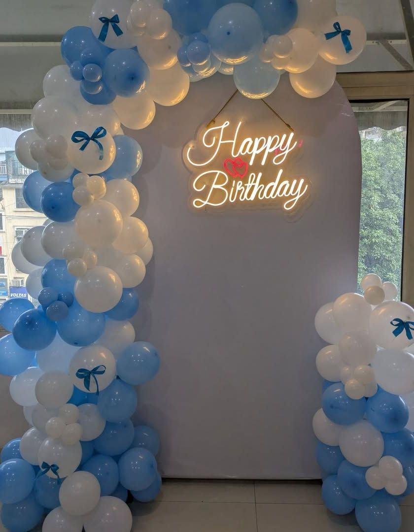 I also design beautiful and elegant decorations for anniversaries. Whether it's your 1st, 25th, or 50th, I can create a special setup with balloon arches, neon signs, and number pillars to help you celebrate your milestone in style.