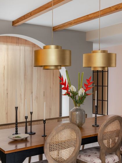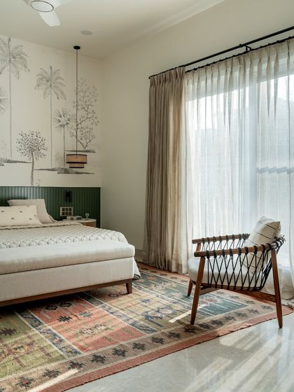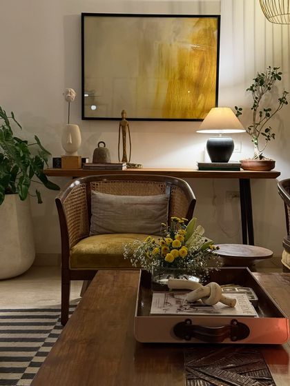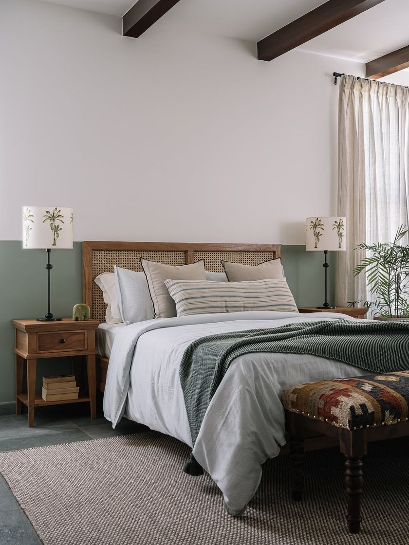 For this Bengaluru home, we blended a relaxed, modern Californian hacienda vibe with an earthy, Indian sensibility. The design uses a warm palette of rust, sage green, and beige, with natural materials like wood and cane to create a home that is airy, laid-back, and thoughtfully crafted for a well-travelled couple.