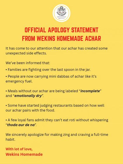 Wekins Homemade started with just a jar of my mom’s Lal Bharwa Mirch Achar. I was living abroad, missing home, and that pickle was like a hug from her. When I came back, all I wanted was that taste again. We realized so many people miss 'ghar ka swad' (taste of home). So, we began bottling these memories, from our own kitchen, hoping it brings others the same comfort.