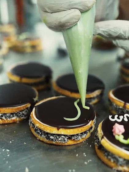 Take a peek into our kitchen and see how we bring our beloved recipes to life. From hand-piping delicate decorations on cookies to mixing fruits for our Christmas cakes, every item is made with care.