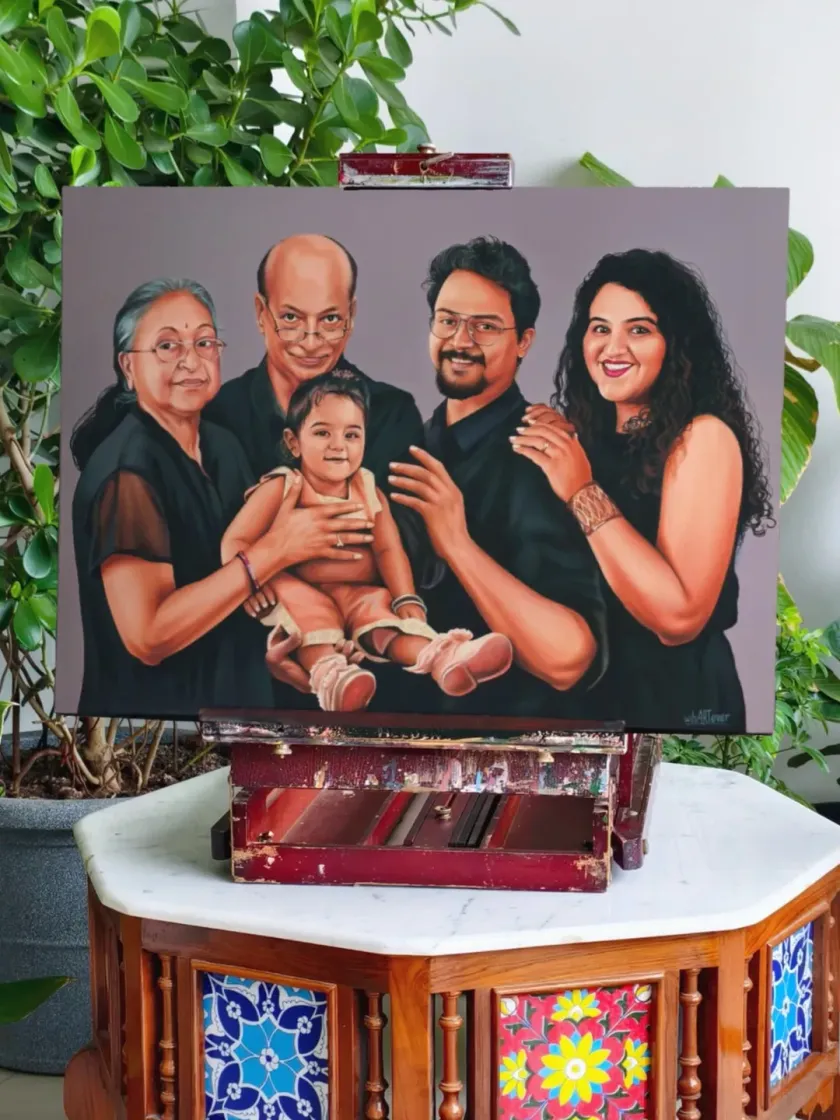 Welcome to our Mumbai studio. Every portrait is hand-painted with care, starting from a blank canvas and brought to life with brushes, paint, and a lot of heart.