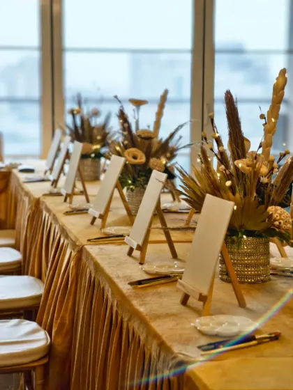 Perfect for birthdays, bachelorettes, or corporate events. We bring everything you need: canvases, easels, paints, and brushes. We guide your guests step-by-step, so everyone, from beginners to seasoned artists, can create their own masterpiece and have a great time doing it.
