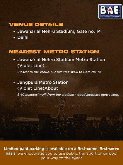 We’re BAE - Before Anyone Else. Why wait? We started because, honestly, nothing hits like hearing your favourite song live, screaming with the crowd, feeling the bass shake your bones. People want more than just scrolling on their phones. Delhi or anywhere, we make it LOUD. For the ones who chase high-energy live shows, who dance till their shoes fade. We’re here for those moments that stay with you.