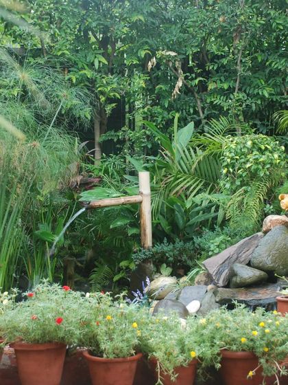Nature, Peace & Privacy - Lush plants, comfy seats, water feature installation, sculptures – we mix it up for a hideout vibe, all about harmony.