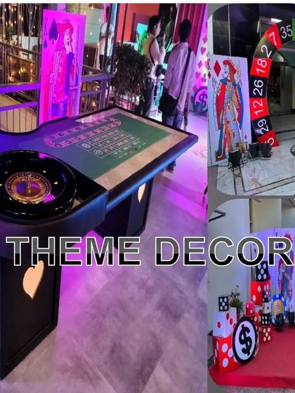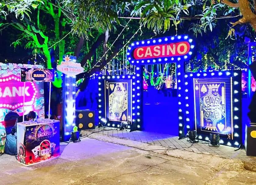 We set up an authentic casino experience for corporate parties, private events, or fundraisers. We provide everything needed for a casino theme, including themed entrances, giant dice props, playing card cutouts, and professional-looking roulette tables.