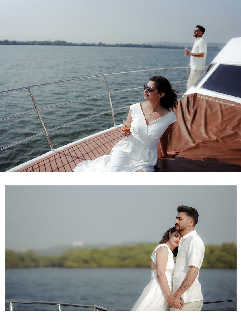 While the mountains are my home, I'm ready to travel anywhere your love story takes me. This collection showcases shoots from the sun-kissed beaches of Goa, featuring everything from luxury yachts to vintage cars, proving that we can create cinematic magic in any location.